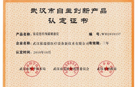 依瑞德经颅磁场刺激仪荣获“武汉市自主创新产品”称号